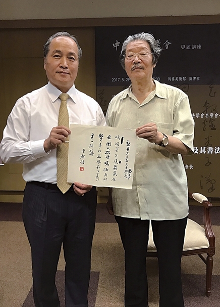 「筆寫古今─于右任的為人及其書法藝術」座談會,鍾明善與中華民國書學會會長張炳煌一同對談。圖︱中華文物學會
