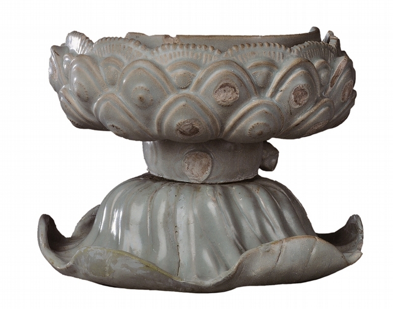圖2 〈汝窯天青釉刻劃蓮瓣紋荷葉形座薰爐〉(殘件),2000年河南寶豐清涼寺窯址出土。圖∣國立故宮博物院Open data平台、本刊資料室