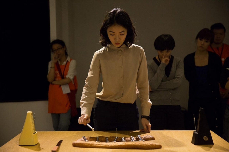 2010年「超親密小戲節」中無獨有偶劇團編導鄭嘉音的作品《肌構》演出現場。(飛人集社劇團提供)