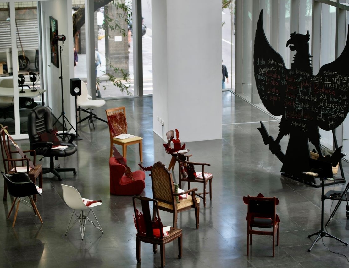 從歐洲回到臺北後,饒加恩時常聽到當時的一位鄰居大聲呵斥家中外籍移工,臺灣社會人口與勞動結構的轉變,加上最為日常的對人之好奇、對溝通理解的渴求,驅使他去上了泰文和越南文課程(最初未找到印尼文課程資源)。「語言教室」的形式,也很快成為饒加恩對跨文化政治經濟結構如何在日常中展現權力關係、藝術家在這些複雜關係中以何身分行動等問題進行探討和反思的方法,後來發展為2011年在立方計劃空間展出的「Thaïndophiliviet」計畫等作品,又在2023年「NEXT:台新藝術獎20週年大展」時,將印尼語教室搬到了北師美術館的展覽現場(「Aisenodni」計畫)。