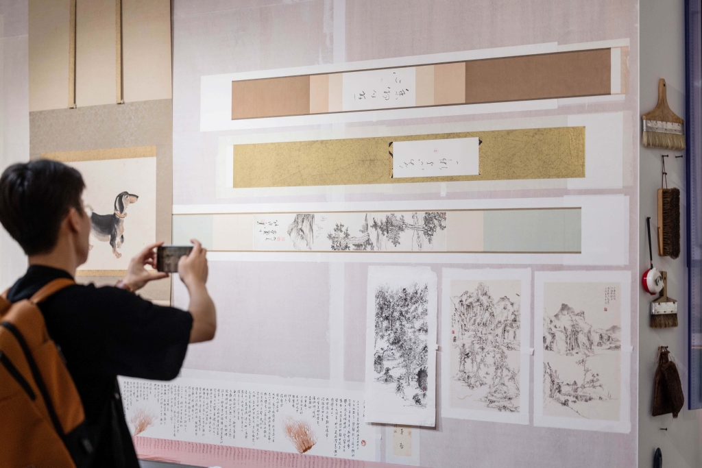 將這些作品掛在一起欣賞,已是吳挺瑋在裱褙店的日常中一直在做的事,然而形容此次布展完成那一刻的觸動,他還是藏不住動容:「全身起雞皮疙瘩,看到大家終於都在一起了。」可選的作品很多,但吳挺瑋盡量縮小範圍,傳統脈絡下太容易看出師承的也被他刪去,因美術館已經將那些脈絡梳理過,他反而希望點出一些跳躍性,例如看到傳統影響至當代的東西,這也呼應了青雨山房裝裱服務客群的結構,一邊是傳統,一邊是當代的創作者。