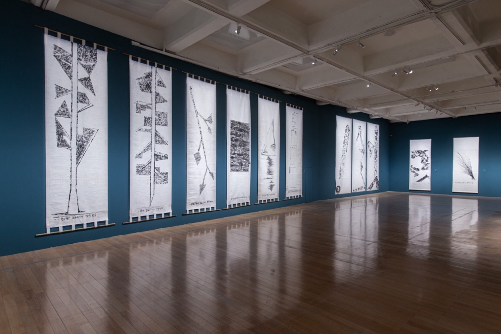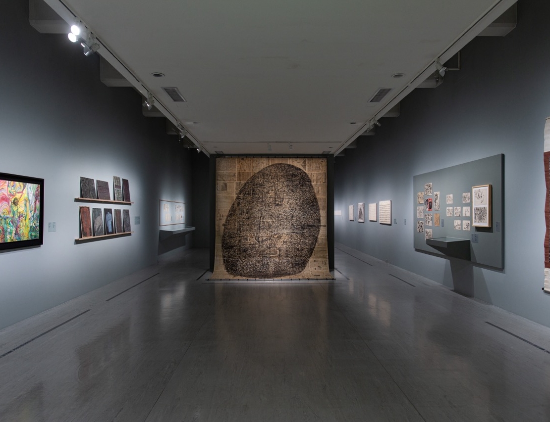 半世紀的藝術探索與冶煉,讓許雨仁的創作數量累疊出難以數計的卷幅。展覽中「雄山大水… …誰知多少?」、「立在石堆裡的自畫像」、「不盡的山山水水石石」、「點,生出了斷點斷線」、「墨墨純純、色色生生」等章幅,映照出的是五十年不曾間輟玩味筆耕的創作者的人生。然而或許,「慢然鬆生」最是貼切地勾勒出許雨仁當前的藝術修為。如果說謝赫的「氣韻生動」指向了作品的氣度與格局,那麼許雨仁的「慢然鬆生」則指向了創作者創作時的心境轉化與昇華。「慢」給出了猶如等待杜鵑春啼的姿態,「然」則指涉了那面對創作時機的自然安適,而「鬆」與「生」則勾勒出了對於繪畫技巧、法度的放下(鬆)與再琢磨(生)。藝術家曾說相較於日本對藝術的精神和哲學理解的深入,我們對自己的藝術精神和哲學理解的不夠深入,在這話語中,一方面可以見到許雨仁對於自身社會對於文化理解的頹唐的喟嘆,一方面也顯影了藝術家自身對於自身藝術之道的探求何在。也因此,以「慢然鬆生」此一指向了創作者創作時的心境轉化與昇華來回應古典的「氣韻生動」,恰是許雨仁對傳統藝術精神和哲學理解的再創造。於是我們更容易理解許雨仁「……夢蝶呀!像老莊一樣,自然流露。」這說法中的藝術體認與修為。