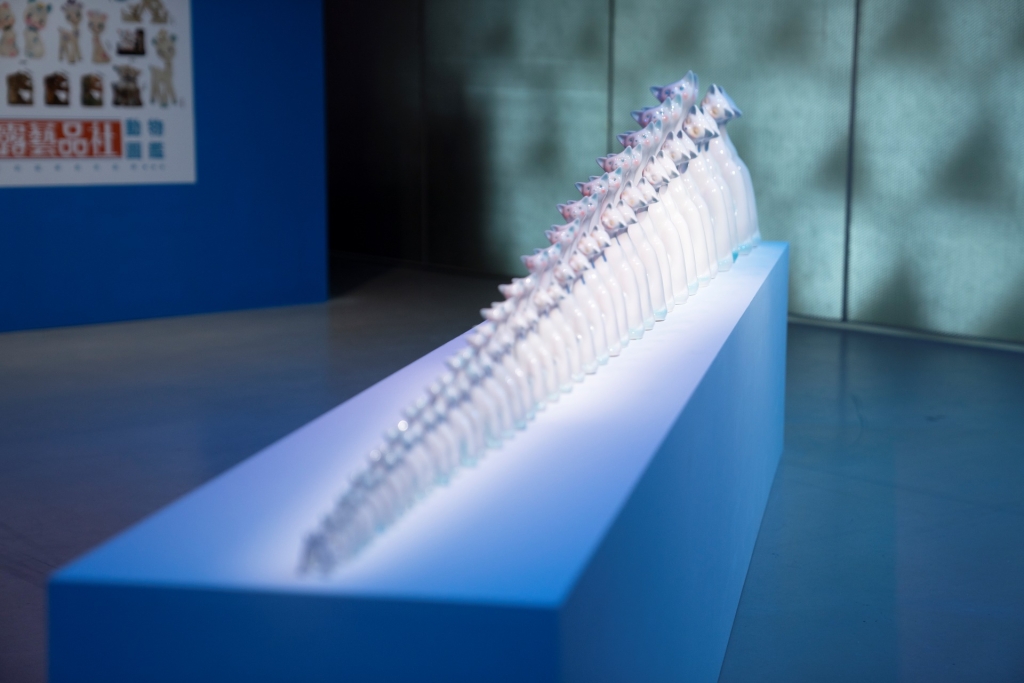 也許是因為找不到一個「原始」母模樣貌的關係,謝佳瑜只能透過不斷搜集瓷器,自下而上的想像母模的樣貌。這些動物的樣貌,也會讓人不斷想像是否是某部卡通或是圖畫書中角色的形象,又或者是,這些卡通與圖畫書本就與瓷器共用同樣的角色形象,本就是時代下的價值觀顯化產物,就是來自於人的思想集合體。
