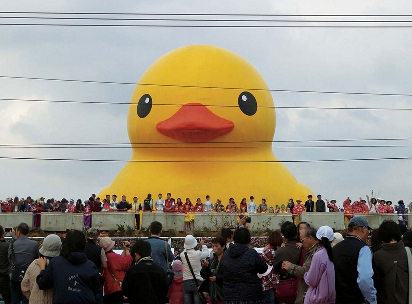 2013年「桃園地景藝術節」中霍夫曼的黃色小鴨以及2016年林舜龍的《永生海》正是一種具魅力的「奇景」,也是政策宣傳下的大作。這大成功下的結果卻也導致了特定區域的交通、停車、垃圾、噪音及攤販聚集等問題,而將原本立意高超的「地景想像」導向了「夜市觀光」。這現象其實縮影了台灣一個無解的觀光困境。由上而下可依序列出一大堆理由及原因:政治承諾下的地方選票生態、視野淺薄的觀光想像、土地意識不高、庶民經濟的急切需要等;但還有一個在需求之間相互呼應的大理由:我們多數的人都需要娛樂—由跑馬拉松/騎自行車,到遙遠國度旅行。