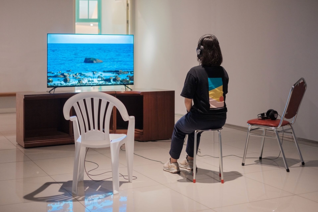 長居臺灣的法國藝術家澎葉生(1974-),以集結了三件聲音及影像舊作的《擴展生活空間》(2024),重現山林、大海以及城市邊陲地帶的常民生活現場。作品記錄了藝術家深入田野踏查,從自身對當地居民生活的洞察出發,經由訪問、採集所構成的聲音風景。從中可以聽見人們因為成長背景與居處環境的差異,在言談間不時流露出的生活態度和價值觀,像是《離島的離島》(2016)中,就讀澎湖二級離島學校的學生被問到喜愛的生物,能不假思索地說出海兔、馬糞海膽……對那些城市裡的大人從不曾聽過的海洋物種名稱如數家珍。