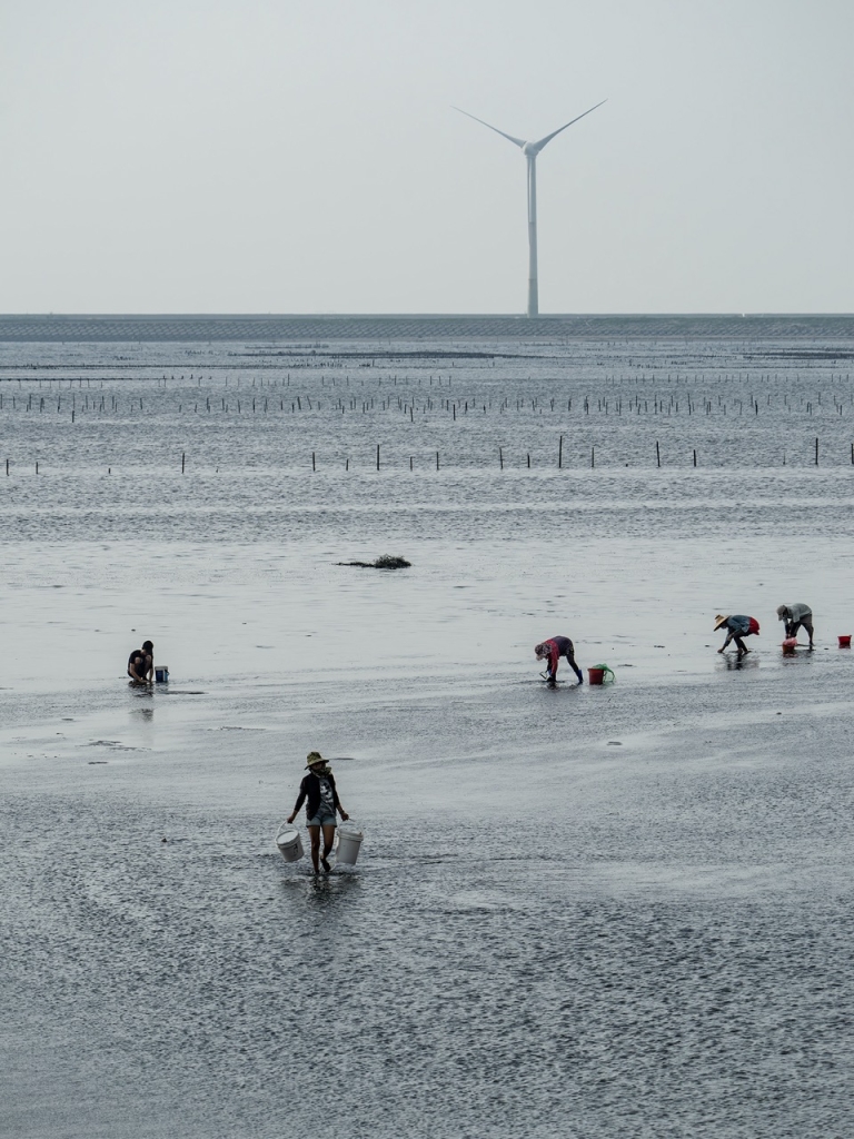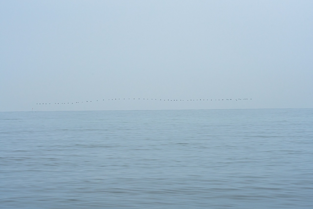 最後一個問題的答案,或許可以從資通工程中的「調變」技術來找到解答。所謂「調變」,是將訊號(例如數據或聲音)嵌入到載波中,讓它能更好地被傳輸,不受干擾。而許震唐正是希望通過「紀實攝影」進行訊息和觀念的調變。終究懷抱「相信影像會改變這個社會」的想望,藉由影像來傳遞信息,影響社會對某些議題的看法,並減少媒體忽視或偏頗的現象。調變更需要精密的技術以及傳遞的訊息。攝影人的調變技術或許可以從「藝術未來計畫」中的描述看出:「北緯23度58分、東經120度是台灣西部近海的中間點,從北緯23度26分至北緯24度12分,在這短短的46海浬中,正是台灣工業產業、能源發展、石化產業等經濟建設的海洋廊道,其中也包含了濁水溪出海口(北緯23度50分)的海域範圍。」在其「紀實攝影」的調變技術中,46海浬在影像裡凝縮,即刻地傳輸出台灣能源、石化等等共構出的海洋廊道。