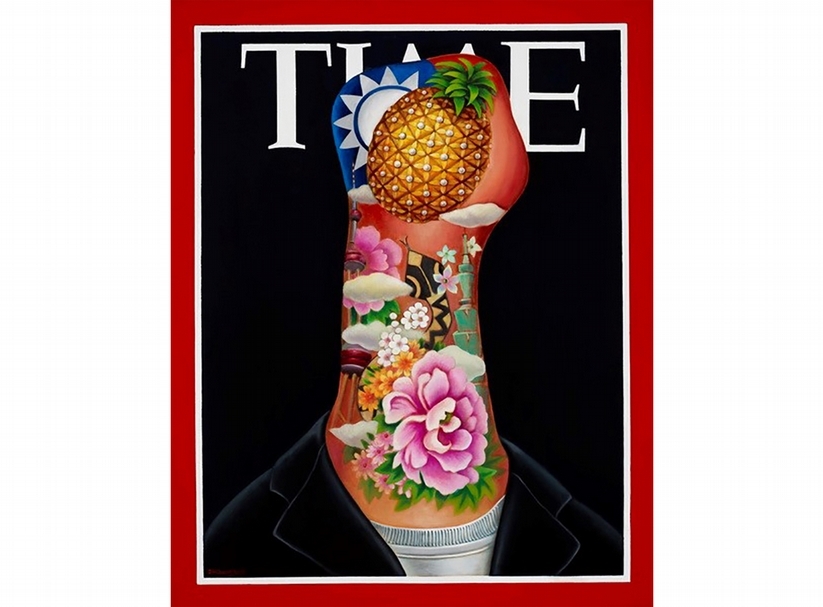 在這次的《美麗新世界》展覽中,「水桶人」於世界中遊歷而後因著尋找愛,引導「時代夫人」的出現。是我對女性地位提升的肯定,也是回歸自己-作為女性暨藝術家-的內心剖析。《夫人之春》揭示著女性過往被父權制約的處境,但溫婉秀麗的外表下,依然有著和男性一樣的自我意識。因著女性意識的醒覺,我也畫了出現在《時代雜誌》封面上的「時代夫人」系列。封面上的「時代夫人」,正是當今世界問鼎權力巔峰的女性視覺符號:梅克爾、希拉蕊、朴槿惠、蔡英文與伊麗莎白二世。