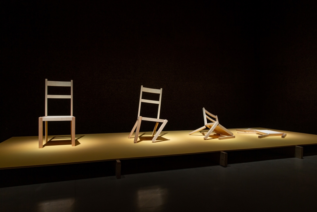 例如,炭筆素描是肯特里奇幾近本能的創作起手式。眾所周知,炭筆所製造出的粗獷、顆粒感以及易於在畫與擦之間留下痕跡的特性,加上黑與白之間無盡的灰階所蘊藏的審美和隱喻,是肯特里奇藉以作為定格動畫基礎的重要原因。動態影像又接續了炭筆繪畫中蘊藏的連貫性,從1989年的《約翰尼斯堡,僅次於巴黎之最偉大的城市》到2020年《城市之深》共11件「素描投影」(Drawings for projection)作品,敘事本身包含許多跳躍、開放、模糊的空間,觀眾一大部分的注意力會停留在無法忽視的美學形式上,逐漸覺察到在肯特里奇建構意義的過程中,所有造形元素都與內容一樣扮演重要角色,炭筆線條與結構的不穩定與崩塌,也隱喻著對既定界線的反叛。這次展覽將其中的五件不同時期作品裝置於同一個寬敞的展間內,投影幕的錯落、聲音的交錯聯動影像與光的起伏,從空間處著手,進一步延伸了作品內部、作品與作品之間的多重時間。