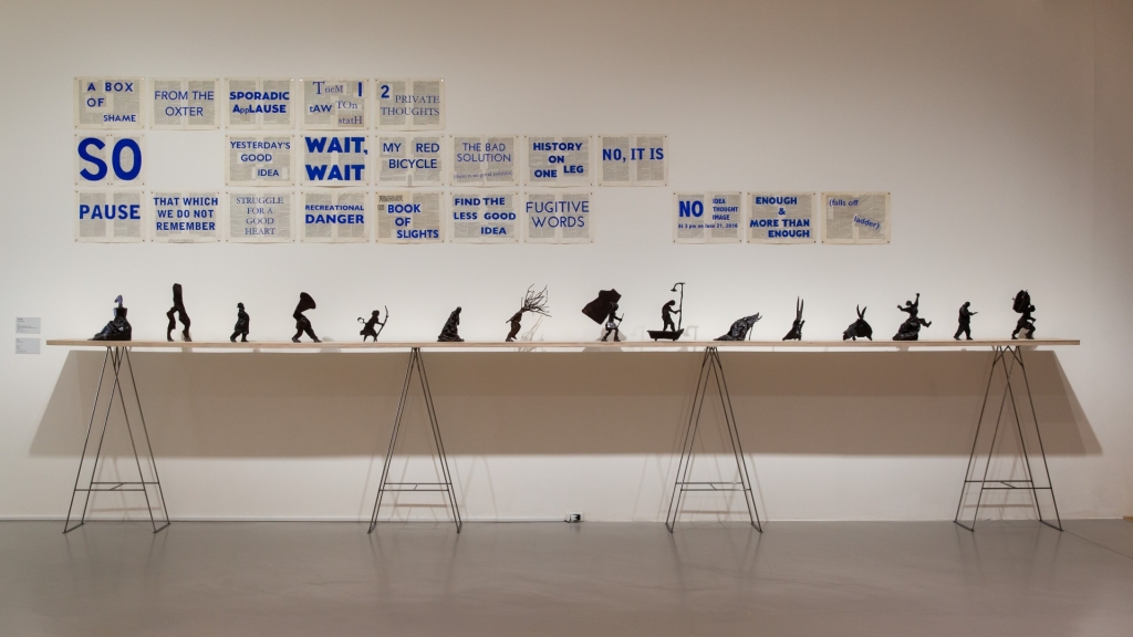 肯特里奇是一位天馬行空般的碎片採集者,他隨時隨地蒐集語句、圖像,字母和字句在意義上的碎片性、以及它們造型上的可塑性,也與繪畫一樣都可轉化為雕塑裝置等其他形式,意義上的開放性是其重點。雖然肯特里奇大多數作品和計畫都與具體的文化或歷史背景相關,但觀眾直接從作品中獲得的訊息卻不見得那麼明朗,但無論是放任自己在觀看過程中「隨波逐流」,還是有意識地組構出某種敘事或觀念,我們都不會被馬上限制於任何一個方向上。名為「辭典」(Lexicon)的小型青銅雕塑系列既形象地展現肯特里奇的這種建構方法,也以「辭典」精準地為其眾多素材的組合作了概括,「字謎」也是這個系列的另一種定義,指向面對它們的觀眾也足以擁有的能動性。這些被肯特里奇成為「字符」(glyph)的元素,在他各種創作形式中的尺幅也相當有彈性,甚至可在一些歌劇作品中與真人演員結合,或是成為大型現地創作的一部分。如是,肯特里奇不斷累積著滋生開放性意義的一片沃土。