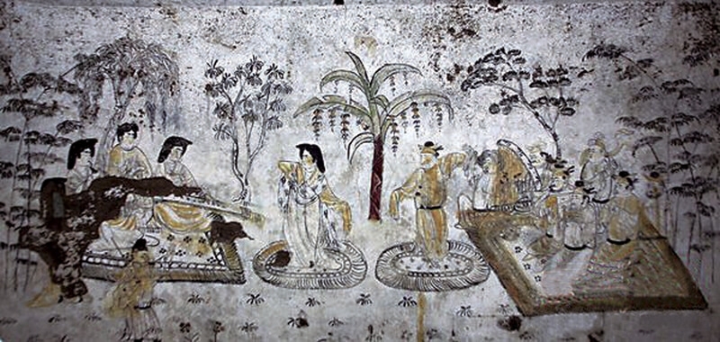 韓休曾是大唐開元治世期間的宰相,個性峭直,其夫婦合葬墓在考古團隊發現之前已被盜掘一空,只有墓中8世紀的珍貴壁畫得以倖存,其東壁的〈樂舞圖〉、西壁的〈樹下高士六聯屏〉、北壁的〈山水屏風〉保存良好、構圖完整,是難得一見的珍品。〈樂舞圖〉中左右兩側分別為仕女樂隊和胡人男子樂隊,男女舞者於中央起舞,看來是一場胡漢交融的樂舞表演。山水屏風則畫夕陽西下時,彩霞紅光映照山景,畫中無人,只有兩座空亭。章懷太子墓的雙層壁畫為新舊壁畫相疊,底層壁畫是墓主以雍王身分初次下葬時所繪,畫有兩位侍女,表層壁畫則是追諡墓主為章懷太子時重繪,為一位體態豐腴的侍女、著男裝的侍女、和一名侏儒仕女,此種情形在考古發掘相當少見。