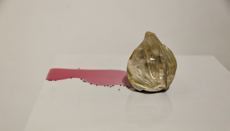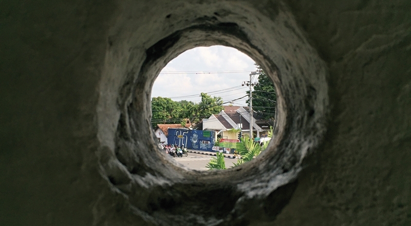 在日惹期間羅仕東創作了作品《石之詩》,跟著兩位年輕藝術家Fehung與Abud,於Kali Oyo(喔伊喔河)河畔暢談此處曾因生產奇石而引起一陣尋石熱潮,當時整個村落工作室林立,充滿切割、打磨石塊的機械聲,然這並非印尼首次產生風靡熱潮,過去也有關於愛潮(love wave)的植物、金魚,甚至2007年的繪畫藝術市場等風潮,羅仕東將這些消長的熱潮拉出了時間的縱軸,疊合17世紀荷蘭的鬱金香泡沫(tulip mania)鬼魅般的歷史幽魂,錄像裡兩位印尼藝術家哲思性的反饋「有時我感覺這不只是出於對某件事情的熱情,更是對於某件事情的恐懼,對於失去,孤單的恐懼。」道出鄉野傳奇與經濟奇觀背後的詩意輪迴。施佩君則於當地創作《Spinning Spirits》,她於日惹特區的古城牆遺跡覓得家鄉台南都市脈絡幾乎遺落的痕跡,她帶著鄉愁走上城牆和堡壘,意外透過過去遺留的槍孔重新窺看日惹當地的日常街景,從過去防禦與攻擊的孔洞重新拼湊對於地方的理解途徑。