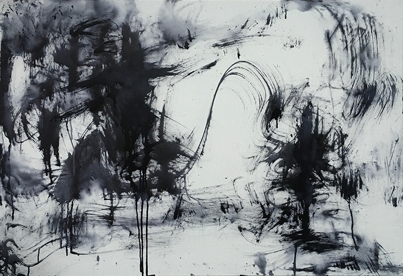 此系列創作是源自眼見過往屢屢造訪的好山好水,慘遭人為破壞無限感傷烙印心靈深處。在因緣際會下,於坐禪放空後,不自覺地自潛意識宣洩出來。用單純的黑色色層與留白,勾勒出「個人心靈記憶中」的北橫、中橫各個雄壯威武的大山大水和氣勢澎湃、時而水氣氤氳的黃山──它們億萬年不壞、地老天荒矗立原地、彰顯無限霸氣、氣勢萬千。藉此,以山昭顯個人的氣魄與心願:期盼畫作得以提點天下:人類多有能耐(是有能耐保護住好山好水,抑或是破壞殆盡?)