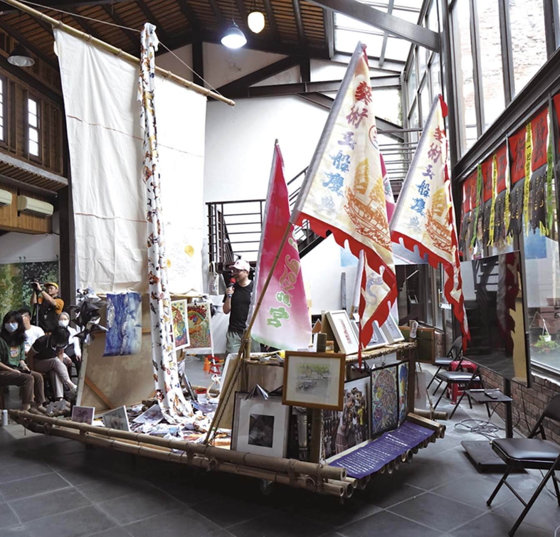 在「藝術王船慶典」開始之前,藝術宮在社群中舉行了一次徵件,邀請各界創作者燒掉自己獨立製作的作品,並參考農民曆風水學的形式,條列徵件須知,而藝術宮的長期合作夥伴周芳伃和王若庭,則協助以設計和企劃的方法,參考宮廟儀式中的平面設計,規劃了整個展演事件從徵件到展出的視覺意象。莊約翰笑說,藝術家陳呈毓也在他的「半拐半騙」之下,答應打造這次藝術王船祭典中,用來放置各位藝術家作品的船。除此之外,也委託臺南知名的糊紙藝師王明賢製作迷你版的「放火馬」。不過參展作品之多,一艘船也無法容納,擺滿了整個剝皮寮展演空間的一樓。除了有攝影、紙本與繪畫作品之外,也有錄像作品參展其中。