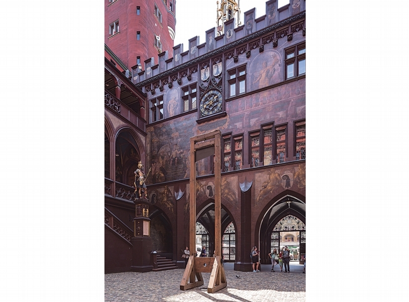 Parcours項目中的其中一項作品在舊市政廳,藝術家Piero Golia擺放一件斷頭台,挑戰權威。