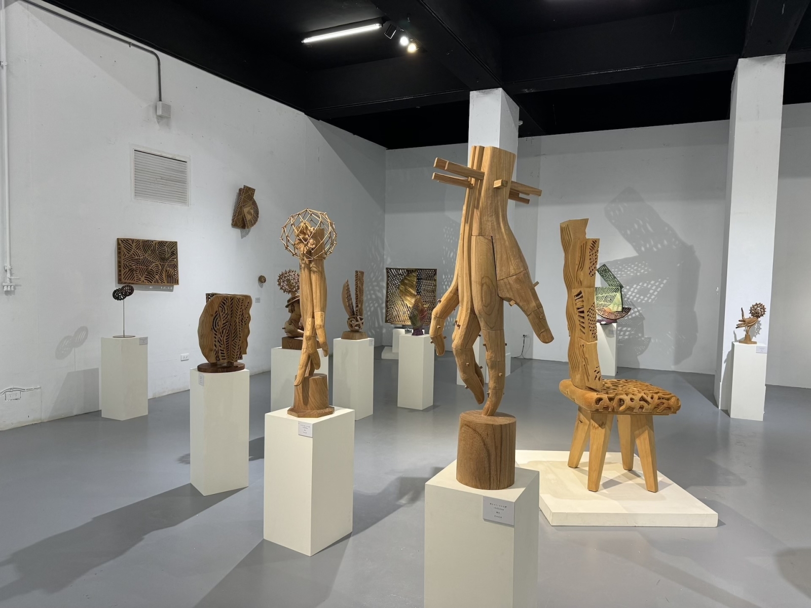 這次的展覽除了已接續因為疫情而中斷的六年連結之外,另一個目的是邀請作為木雕藝術教育泰斗的竹田光幸,在臺藝大擔任為期約五天的客座教授,教授來自日本的傳統合鋼木雕刀鍛打技術、完整木雕創作精神,以及課程中介紹藝術史上與臺灣相互交織的藝術家與作品脈絡,為臺灣的學生引入另一種傳承的意義。