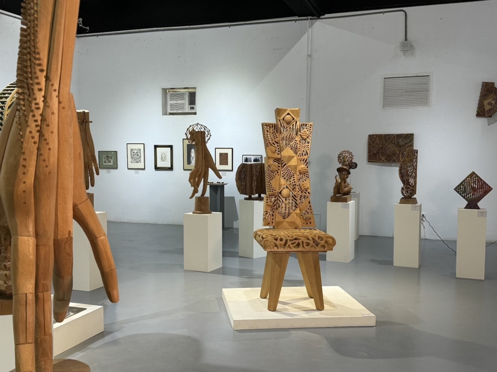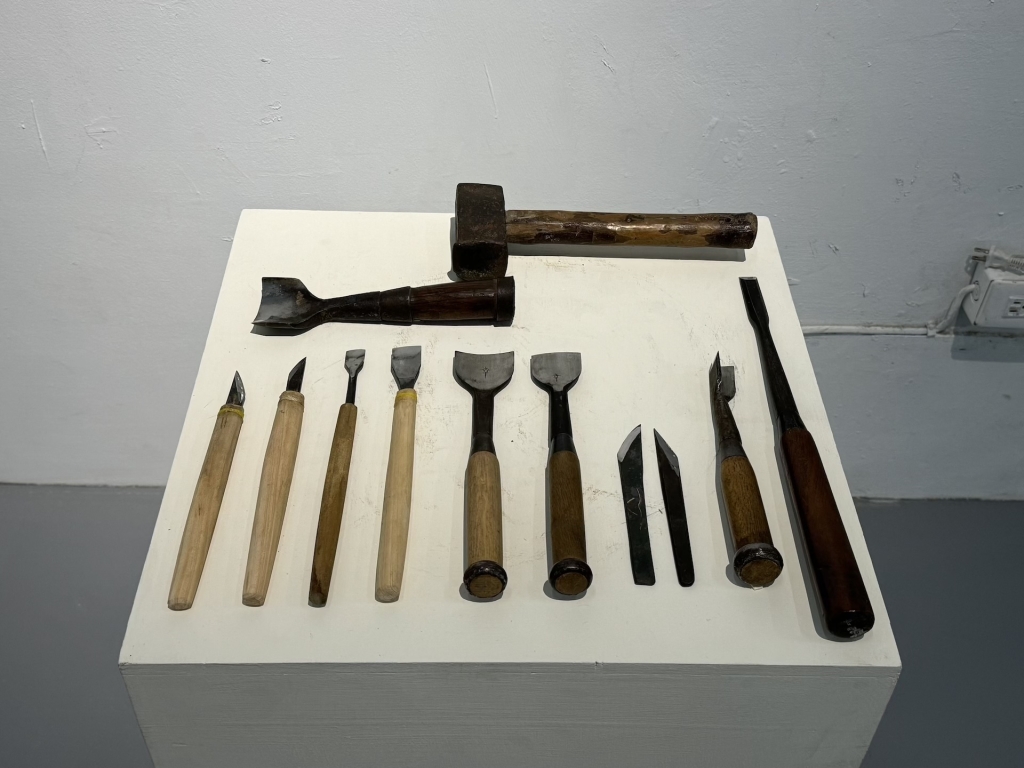 竹田光幸指出,雕刻刀是木雕家雙手的延伸,刀型的選擇影響創作體驗與作品表現。圖為「竹田光幸 × 竹田智美 雙人展」展出現場。(攝影/李京樺)
