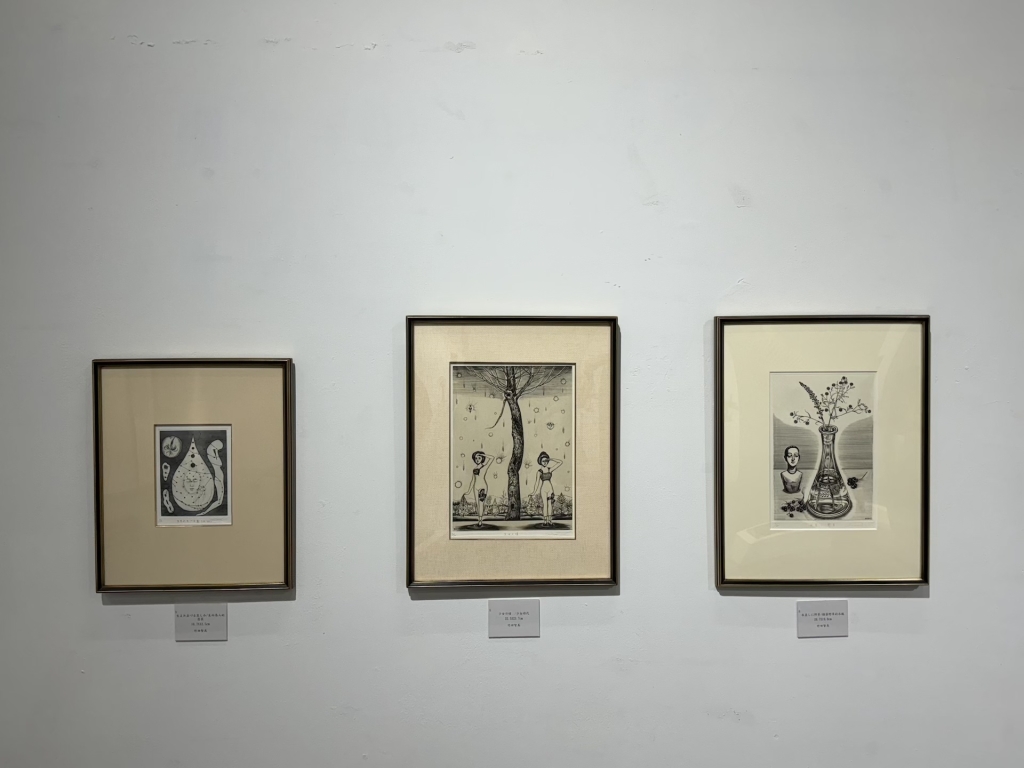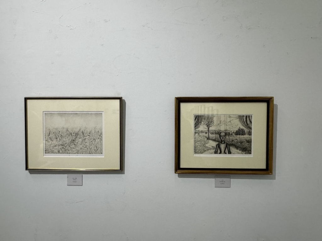 版畫家竹田智美與竹田光幸於多摩美術大學相識,專攻銅板雕刻版畫。她睽違40年再度舉辦展覽,因婚後專注家庭而放緩創作,直至丈夫退休後重拾步伐。圖為「竹田光幸 × 竹田智美 雙人展」展出現場。(攝影/李京樺)