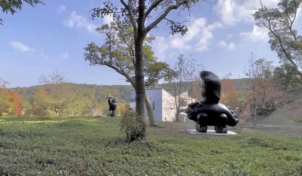 前往隱辰山居的尋訪接近尾聲,我們沿緩坡散步至正門,雨過天晴後,一隻蝸牛緩緩爬過暮色餘暉中雕塑的光滑表面,想起方才在室內牆上所見,李真十餘年前的一紙書法「磴古松斜苔,老一片清愁」。對於他近年來選擇安居於此,似也有了新的理解:若說李真的雕塑是其內在世界與外部碰撞後的具體現身,這一片尚未被完全整飭、也並不急著規畫的山坡,也好似仍存野生之境的精神領地,預留給未來的驚喜。如其所言:「只要生命還沒結束,就會不斷地去印證自己對感知的感動。只要還活著,這就會不斷持續下去。」