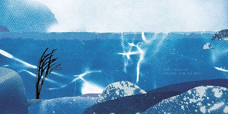 關於童書閱讀的邏輯,如一開始「天空是藍的」、「海是藍的」、「地球是藍的」皆沒有搭配完全是藍色的插圖,造成閱讀上反差的驚豔,「圖畫書有趣的地方就在圖文的搭配,是可用很多不同的邏輯去呈現,當時就是想故意這樣玩一下,一開始前面的藍是刻意反差的降低,等故事開始藍色才慢慢釋放出來,彩色的部分究竟要怎麼鋪陳?放在什麼地方、具有什麼意義?我們都經過非常多次的討論。」