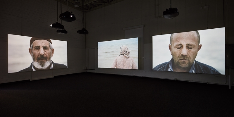 《看海》是關於伊斯坦堡一群從未見過大海的人第一次看海的故事。作品以低調內斂的方式呈現:約五分鐘的影片無隻字片語、只有浪濤拍岸的聲音,僅將鏡頭聚焦其背影,等待他們轉身面對鏡頭。卡爾讓他們把自己看海初體驗的私密感受留給自己;儘管從背影肩膀的抽搐或擦拭眼淚的動作中,可以猜測他們的激動和感動。這件本身充滿詩意、散發龐大情緒張力的作品,在緊臨海濱、從窗戶即可看到海、聽到浪濤拍岸的前消防站展出,益發扣人心弦。另一個房間裡展示了《最後影像》,由13件照片和文字組成敘事,透過因疾病、意外等各種原因失明的人,描述記憶中看到的最後景象。他們的描述赤裸直白,其中的記憶令人不寒而慄,不勝唏噓。