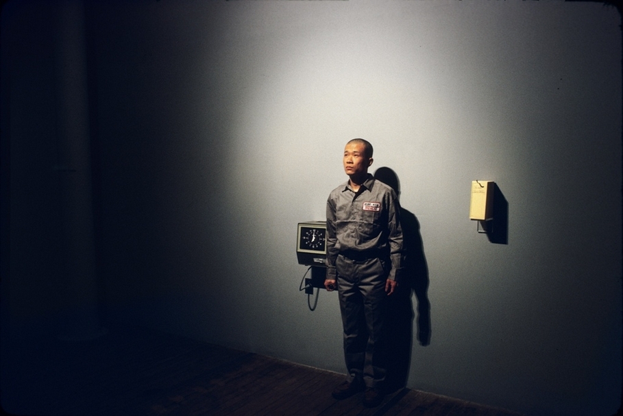謝:《打卡》這件作品一般會用社會或工業、資本主義方式去看,但我真實的想法是連我睡覺、休息、工作的時間全部都在藝術時間中進行,所以我不是用工業角度在做,一個人的心臟是24小時在跳動,這樣看的話,一個流浪漢也是working hard,流浪漢再怎樣也還是要吃東西、活下去,我並不覺得流浪漢就是懶惰,即便最懶惰也可能是最working hard,至少他還會在垃圾桶找食物、吃下去,讓自己多過一天。我的作品比較是在藝術時間中去生活,這種生活的配件就是24小時,所以我不會選15分鐘或兩小時做打卡,一小時是一個很好的韻律,且我還可以持續一年,最後呈現出來也會是恰切的。我比較重視普遍性的問題,這跟我的孤立、孤獨結合在一起才可以運作,我的主題還是時間,對我來講很多以空間為主角的議題是涉及政治性的,而不是作品本身強大到可以成為普遍問題。