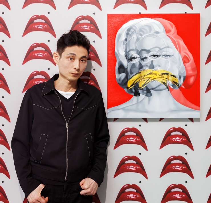 「試鏡」系列展出實景,中為《Mario Banana#1》,右為《口交》。