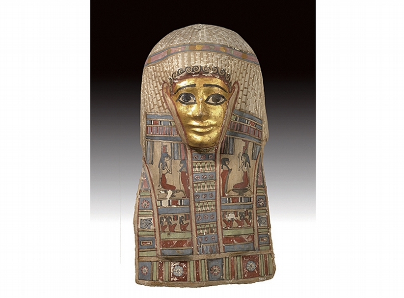 〈彩繪鍍金木乃伊面罩〉。