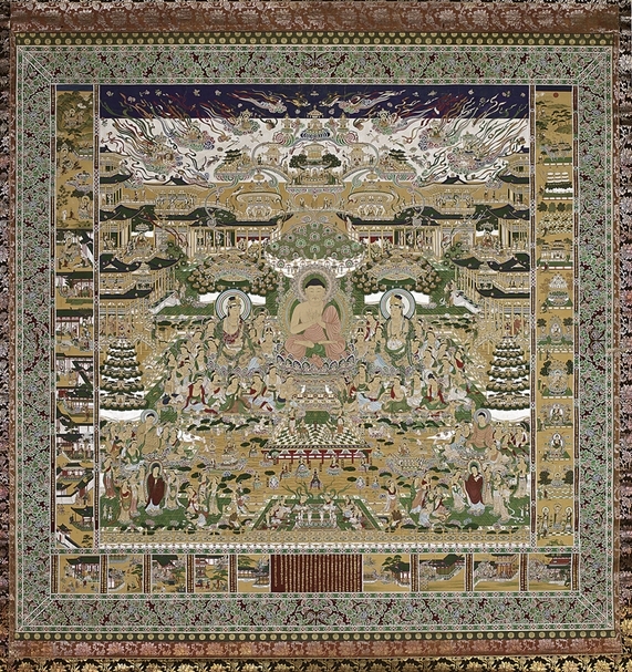 圖2 明譽古磵〈當麻曼荼羅圖〉,日本奈良法隆寺藏。圖/日本奈良法隆寺