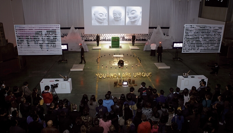 儀式的整個過程,5位執行者通過反復誦讀藝術家陸平原《故事:畫背後》(2013-2014)、《給你點顏色看看》(2013-2014)和朱昱的《由100個方案構成的一個方案》(2006),來調節儀式的節奏,其中楊振中《我會死的》(2000-2005)將這場儀式變得拘束、緊張,而張鼎的《一場演出》(2012)中,演出者用沙啞的男音喊出「這將會是歷史的時刻」這一句,將整個儀式帶進了高潮。當藝術家王思順象徵《真理》(2014)的火種在祭台上完全點亮之後,儀式也就結束了,所有祭師也將陸續退場。在這整個過程中,觀眾成為了這場儀式的參與者。