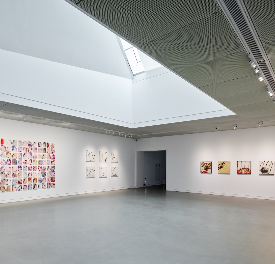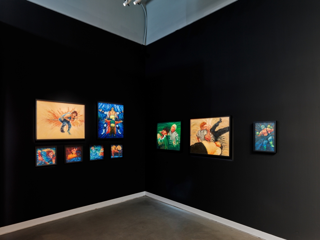 對比王、丘二人與白盒子空間適配度極高的作品,入圍者中,亦有如李侑誠《摔與現實世界》、莊仟廷《我失落的原初地》這種著重於畫面細節、情緒表現的作品。可當這幾件作品被置於展場較勁,以莊仟廷《我失落的原初地》為例,就容易陷入形式對比上的劣勢。這件由五幅繪畫構成的作品,講求透過細膩筆觸帶來近似蕾絲布料的觸覺記憶,觀感上凸顯出作者細膩、感性、注重內在感知的創作進路。