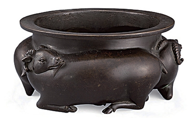 著名的「宣德爐」即是明宣宗時下令設計製作的祭祀用香爐,採用泰國進貢的「風磨銅」,發展出莊重優雅的香爐美學。清代金石學家與收藏家吳大澂也擁有一件宣德爐,造形經典,底部刻有「瑞芝堂主人識」篆書。本次還展出一件〈橋形耳三足銅爐〉,為宣德五年春天賜給戶部尚書郭公的禮物,此爐造形圓潤穩重,皮色為生栗殼色,相當優美。一件宣德時期的〈獅耳量形三足雨雪鍵金爐〉,據載是模仿宋代定瓷的式樣而作,可見銅製香爐的款式也受到古代陶瓷器的影響。清代後期發展出印香爐,印香爐原是寺宇中誦經計時的工具,爾後成為一種具有特殊功能的香具,能夠在焚香時顯現出各式圖案和文字,展現別具趣味的香煙之美。