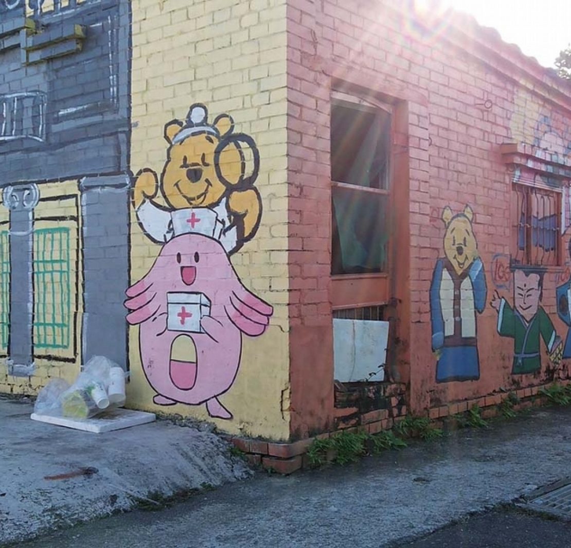查閱地圖,光以台南市行政區範圍來計數即有近60處規模大小不一的彩繪村,其中,位於下營的「小熊維尼彩繪村」,在2014年經由鄰里的返鄉青年大量彩繪以經典卡漫角色或人物,及旅遊部落客推波助瀾宣傳後,很快速成為當地最重要的觀光景點,也由於這個案例,外溢並影響至許多搭著「農村再生計畫」列車的西部農村,產生更多以日漫、ACG(註)為主題的彩繪村。批判這種現象的呼聲伴隨而來,無論是社造、文史、藝術工作者,對於這種直接挪用/盜用(appropriation)的作法大多抱持相當負面的評價,在媒體或社群網站版面予以抨擊。