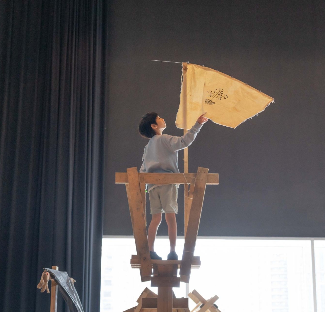 美術館驚見海盜船、探險高塔、迷你雲霄飛車!今年兒童節,桃園市兒童美術館(以下簡稱兒美館)充滿了歡笑,原來從3月12日起,就有一連串培力工作坊,在兒美館國際演講廳舉行,從「兒童博物館與孩童共同打造學習與遊戲環境」、「肢體方法與藝術」、「體驗創造的遊戲方法」到「人文教育中的關係延續」等命題,逐步推進、建立遊戲中學習必要的獨立思考及群體合作軟實力,並且在4月3日進入下一階段,統合前四堂工作坊集思廣益的精華,共議遊戲場結構,試圖打破館方、家長、兒童之間僵固的不對等權力結構,共同動手建造4月4日的「開放遊戲場」,讓報名的親子觀眾共襄盛舉。