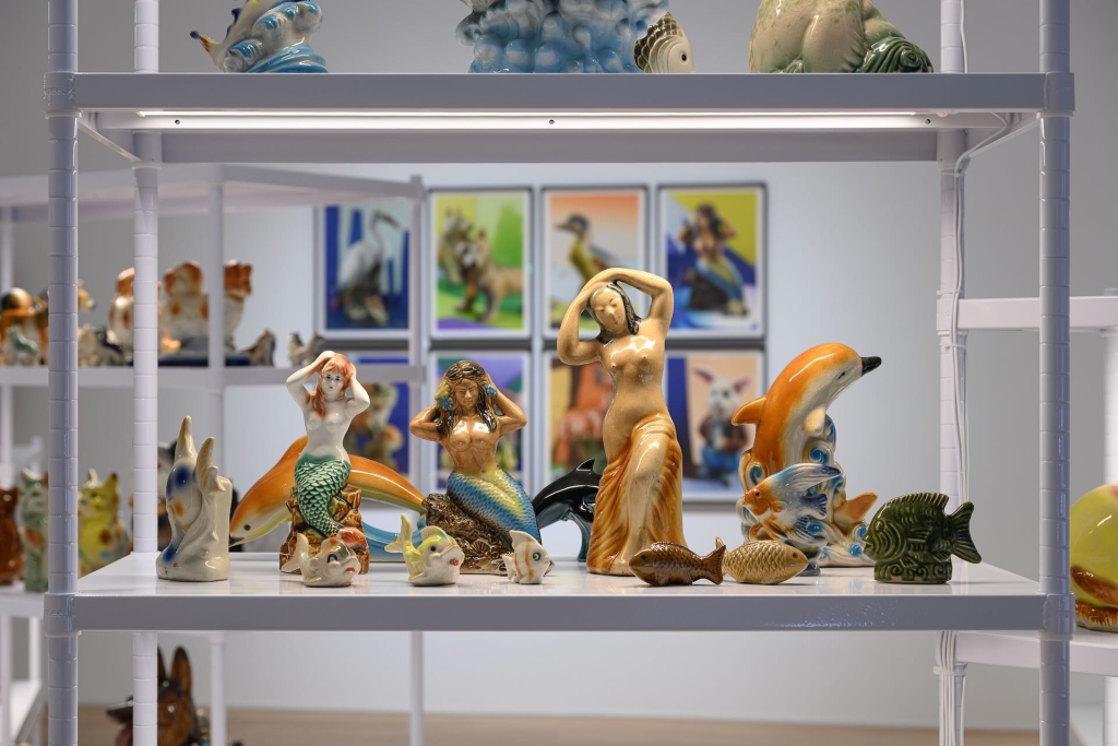 展場內第一段聚焦於藍領階級的勞動身體與產業地景,從歷史圖譜中勾勒出新北市作為生產節點的城市輪廓。藝術家吳權倫展出他到世界各地收藏的陶瓷藝術品,從中可以看到來自不同地區的陶瓷,在造型、用色等相互影響的相似性,甚至可以從其中推敲出背後的全球陶瓷加工鏈。另一姚睿蘭延續她對銅礦的研究,聚焦在金瓜石、九份等地的礦物歷史,這些礦物都為不同時期的臺灣提供重要的礦物經濟。然而,藝術家企圖探討的是,若我們剝除了它們的政經任務後,如何從非人的視角來重新理解這些自然物質。引爆火山工程同樣透過非人視角的實驗性考古手法,以龍門核能發電廠(核四廠)加上該地的歷史傳說,來談論身分建構、信仰與歸屬等精神認同。
