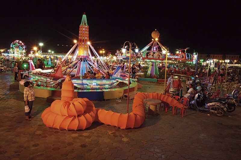 Anida Yoeu Ali在美國居住長達30年,2011年回到柬埔寨定居。《The Buddhist Bug》的媒材包括有行為、裝置、攝影和錄像。Anida Yoeu Ali的操作方式,主要是特製一件長達數十公尺的服裝,穿在她身上後,在視覺上看起來像是一條巨型蚯蚓之類的大蟲。在《The Buddhist Bug》的系列影像中,可看見穿上蟲服的Anida Yoeu Ali現身於柬埔寨多處日常民眾會聚集的公共場所中。