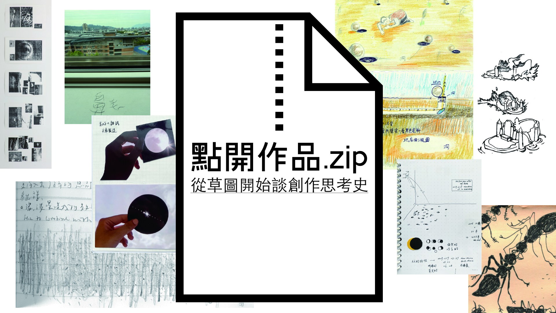 作品還不是「作品」的時候,藝術家在想什麼?我們又該如何理解這個階段的思考?當想法尚未成形、資源也未到位,甚至還不確定能否能真正實現時,藝術家要如何與世界溝通他們的意圖?草稿、筆記、便利貼與速寫,在創作過程中扮演什麼樣的角色?它們是靈感的記錄、與團隊溝通的媒介,亦或是在申請資源時的「承諾」與「憑據」?