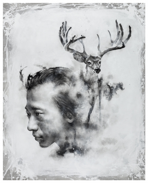 羅展鵬一直以來對於繪畫的媒材與技法,有著深刻的鑽研與堅持,而「草莓族」系列更是早年所發展的作品。「草莓族」一詞是由上一個世代創造出來,用來形容下一個世代的詞彙;當羅展鵬引用來為自己的作品命名時,「草莓族」一詞已成為內觀與外觀同一的他者。換言之,羅展鵬必須從自身的觀照,環顧自己在世代流轉中的座標位置。延續肖像的主題,羅展鵬繞道而行,轉化不同文化的養分,自成迴路的展現出殊途同歸的系列作品「人間草紙」。這是羅展鵬在柏林、洛杉磯駐村時開始醞釀的系列作,深受快閃、率性、精準的塗鴉風格所影響,簡約輕靈的筆觸,繪畫中帶有濃厚的書寫性。此次「墨嵐」個展中的作品,保持黑白基調的掌握,在煙波浩渺的霧嵐中,讓容顏的具象,與飄忽的氛圍纏繞在一起,一種新式的東方意象油然而生。