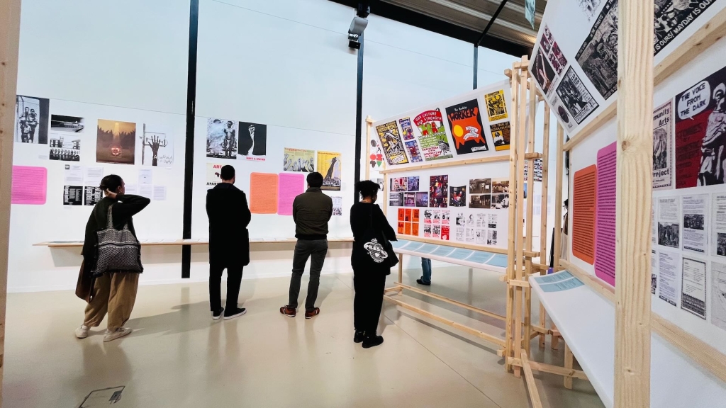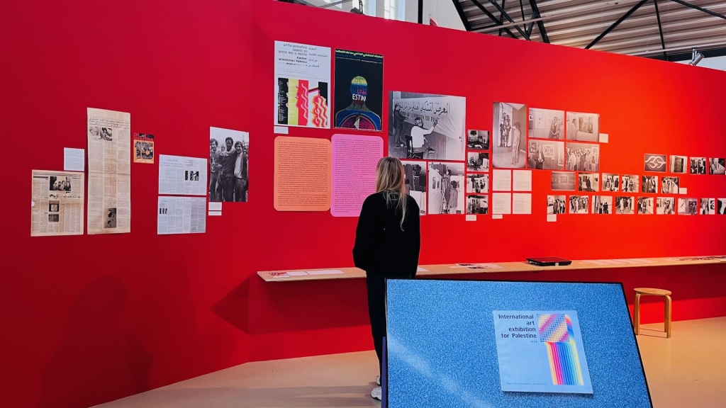 而「往昔的騷動」展覽以藝術與政治抵抗為核心,透過重建「流亡博物館」(Museums in Solidarity)串聯國際抵抗行動,包含1978年黎巴嫩貝魯特的「巴勒斯坦國際藝術展」(International Art Exhibition for Palestine)、智利的「薩爾瓦多・阿葉德國際抵抗博物館」(The International Resistance Museum for Salvador Allende),聲援尼加拉瓜的拉美藝術博物館 (Museum of Latin American Art in Solidarity with Nicaragua),以及南非反種族隔離與反殖民藝術行動 (Art Contre/Against Apartheid) 。藉由交錯的敘事線,挖掘被歷史忽略的記憶與跨國連結。例如,1970年代,流亡的智利藝術家與各國藝術家發起的團體民主藝術家 (Artists for Democracy) 在歐洲策劃了「智利民主藝術節」(Arts Festival for Democracy in Chile)等多檔展覽,聲援智利民主及全球解放運動,其藝術行動也與巴勒斯坦等地的藝術行動產生共鳴。