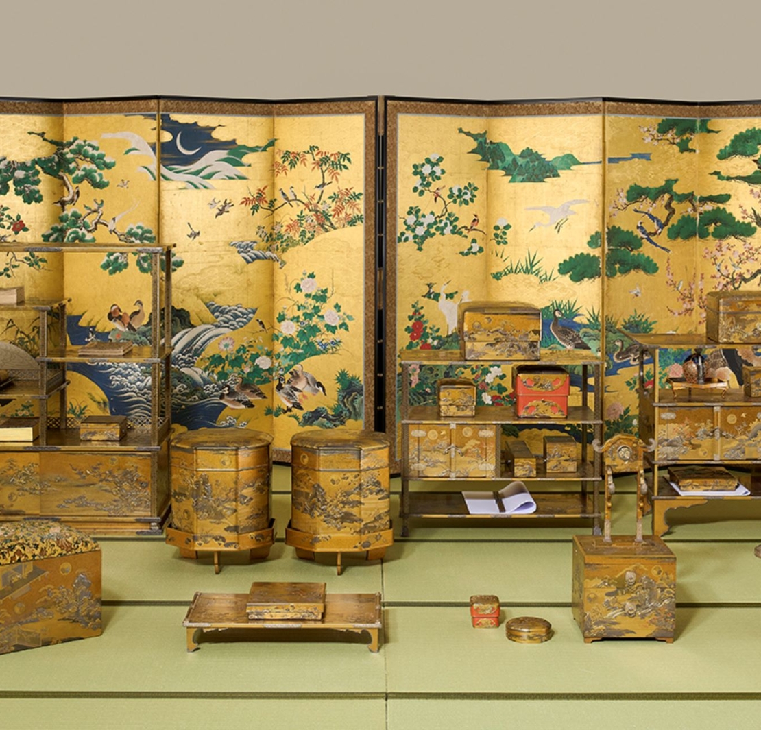 今年適逢德川美術館90週年紀念,特別展出僅存70餘件,仍熠熠生輝的日本國寶《初音婚嫁調度品》(初音の調度)。(註1)所謂「初音」,源自日本古典文學《源氏物語》第23帖之名,全套婚嫁用品中,諸多器物以該帖情節入紋,極富文學意涵,將平安時代的風雅意象,轉化為江戶時代的視覺詩篇,無法遮掩德川將軍家的榮光。