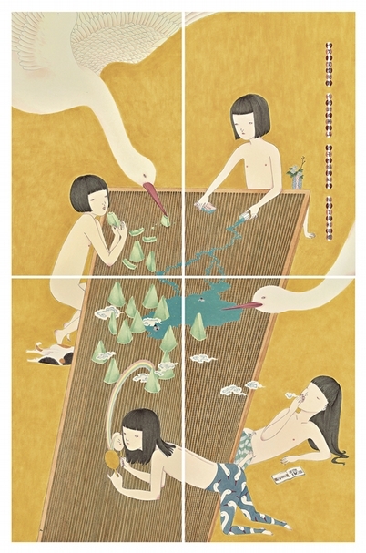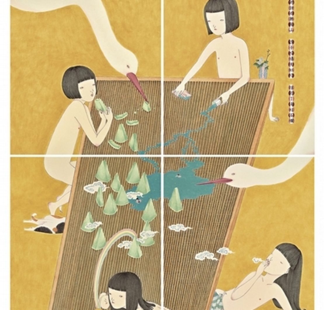 梁嘉賢《時間的碎片》.水粉、中國顏料、水墨、塑膠彩、原子筆、木顏色紙本.一組4件.各59×38.5 cm.2017。圖|大觀藝術空間