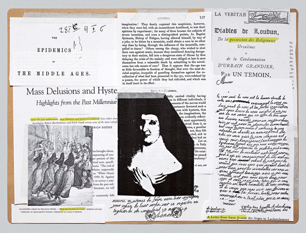 我們面前的確有錄音、證詞等作為證據的大量史實、文件檔案,不過藝術家更運用影像、通過文獻攝影的方式做到這一點,進入社會組織探索不可見、收集更多證據。在無法解釋的現象當中,附身或女巫「傳說」一方面都規避了真實的、科學理性的原因,正如當年貌似「科學」的醫學用詞「歇斯底里」。與此同時,這也控訴整個「科學、醫學」的歷史,都是男權厭女的系統性歷史。