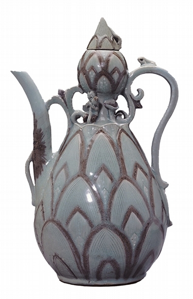 韓國高麗時代〈青瓷鐵繪蓮花紋葫蘆型水注〉,三星Leeum博物館藏。圖╱韓國文化廳