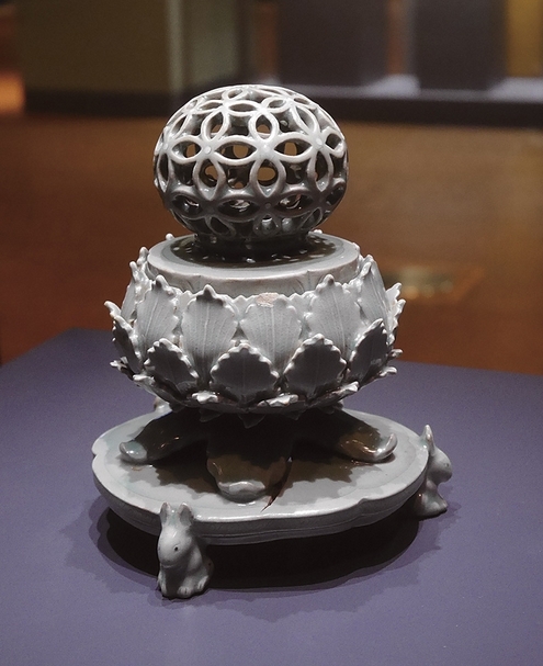 韓國高麗時代〈青瓷透刻七寶紋香爐〉,韓國國立中央博物館藏。攝影╱王怡文