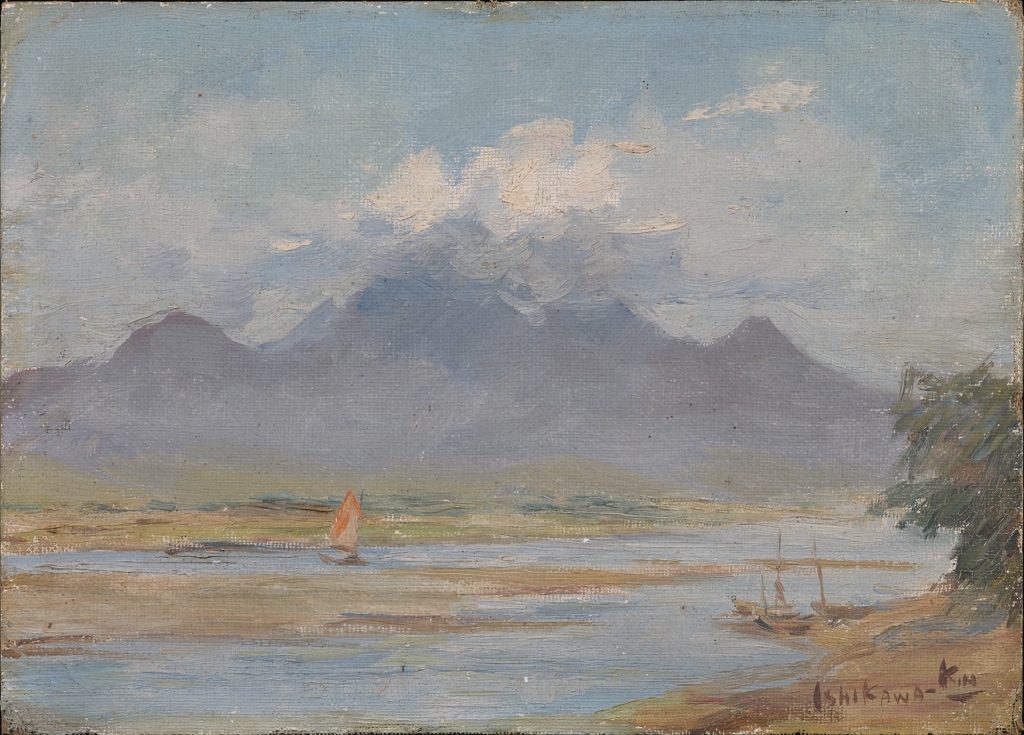 石川欽一郎約1930年作〈觀音山〉,畫布油彩,24×33公分,順益台灣美術館藏。順益台灣美術館提供。