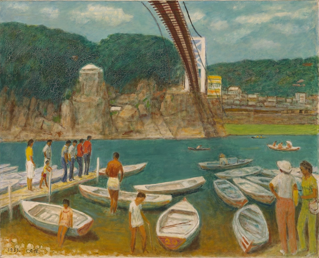 李石樵1980年作〈碧潭風光〉,畫布油彩,80.2×100公分,順益台灣美術館藏。順益台灣美術館提供。