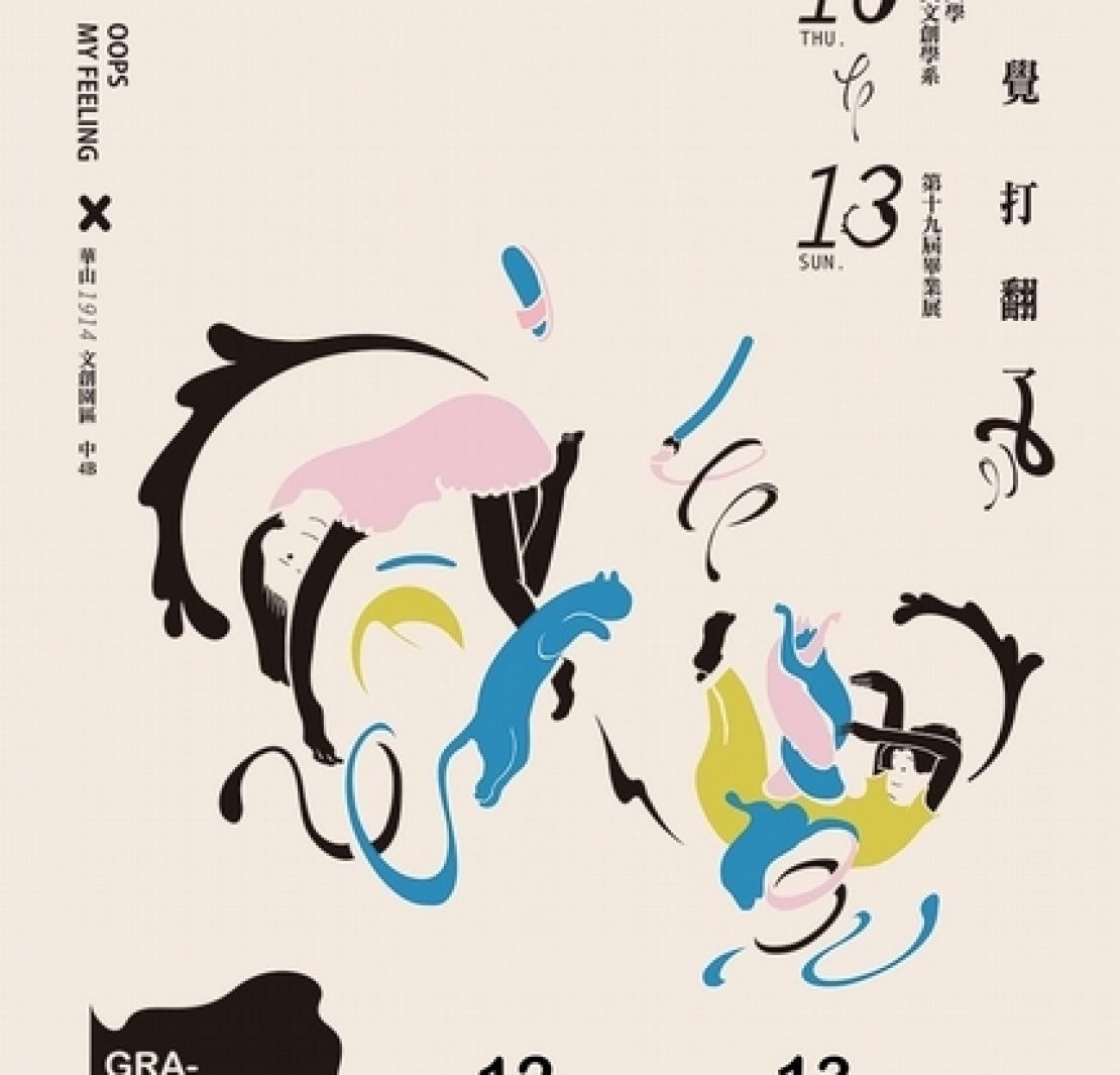 本次展覽中,「打翻了」不僅說明翻倒的動態,也包含了作為形容詞去表示感覺在腦袋裡的奔流。面對每次的創作,鑽研藝術設計的學生擁抱那些恣意橫行的「感覺」,並以平面、立體、裝置、錄像、空間營造與概念的形式將新世代青年藝術意識「打翻」後創造的結果呈現於畢業展。