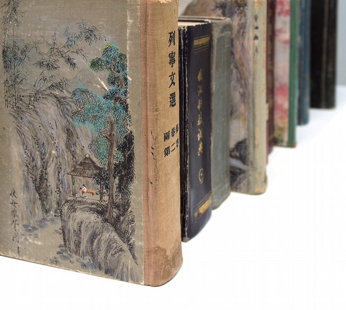 對於70後的申亮而言,童年沒有電視也沒有電子產品,「小兒書」是唯一的視覺娛樂。小兒書的題材多是三國演義、水滸傳或抗日故事,以連環漫畫搭配幾行文字,易讀有趣。「通常是一個老頭兒在大街上推著裝滿上百本小兒書的板車,旁邊散擺著板凳,大人小孩都有,交了錢就坐著看書。我印象特別深,所以開始收藏小兒書,當作懷舊,也滿足個人情感需要。」他的「畫書」系列便結合消逝的時代記憶,以及西方當代藝術的現成物概念,在破磨傷損的舊書封底作畫,這些有如時光之塵堆積起來的蔫黃厚書,美得像是一翻就會灰飛煙滅。