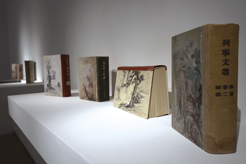 如今他購藏舊書的目的並非為了閱讀,而是著眼於書籍的裝幀質感以及主題,將其作為創作的媒材。起初他著迷於舊書紙質的時光痕跡,在書封臨摹古畫,接著又融合了傳統山水與當代元素,或者單純只畫日常事物。此後他又進一步推想,繪畫的題材能否與書籍的內容衍生對話?比方說,他在《聖經》上畫觀音菩薩,中西宗教信仰形成的對比張力顯而易見;也在《列寧文選》以及馬克思《資本論》的封底畫野合圖,表面是崇高的精神思想,壓在底部的是赤裸裸的人性慾望。他現在總是隨身攜帶舊書,將剎那湧現的靈感,快筆捕捉為書封上的繪畫。這4年來,書畫系列已累積約400本。申亮說,書畫系列為長期計畫,將會畫到生命終老,有如書寫日記一般,具有記錄個人情感、記憶和生活觀察的性質。