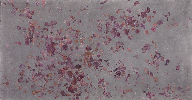 學院裡維妙維肖的人像習作,僅是創作前的技藝訓練,而創作得像是拓荒般,開創一條還無人抵達的道路。習作與創作之間的思辨,讓申亮於2008年時畫出「小兒書」系列,靈感源自他平日收藏的小兒書,他將書封上的寫實圖像轉化到布面油畫上,亦即將學院訓練手法結合兒時生活記憶,形成個人創作語言,同時也找到進入當代藝術的路徑。到了2011年創作「手絹」系列時,他開始嘗試使用丙烯作畫,近年作品媒材幾乎以紙上丙烯為主,例如「皮紙」系列,他將求學時期消磨青春的蘇派素描訓練,化為此刻鋪滿紙面的鉛粉,另在紙上描繪瓜子殼、蒜皮和紅洋蔥皮等,在人們眼中,它們存在是為了被剝除扔棄,但這些微小的物象經過反覆地描繪、集聚、堆疊,便由具象而變得抽象,衍生出浩繁的美感,瓜子形狀近似書法的點橫豎撇,蒜皮一如桃花般落英繽紛,廚餘碎末也有了盛宴的華美。