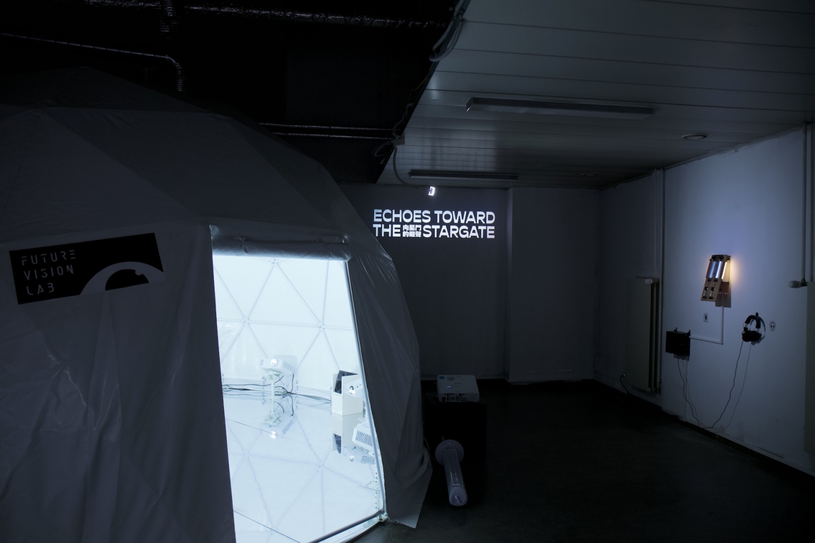 策展人林晏竹指出,展覽的核心隱喻是「星門」(Stargate),這個概念具有多層次的意義:「星門」源於古巴比倫神話,貫穿於科幻作品的想像,最終與當前「美國推動的人工智慧計畫」等現實戰略緊密連結。這種連結將臺灣所面臨的、包含科技戰略與國際群體在內的「隱性架構性恐慌」,提升到具歷史縱深與未來預言性的哲學高度。透過「回聲」的語彙,展覽也試圖將臺灣作為地緣政治與科技節點的複雜處境傳遞給國際觀眾。